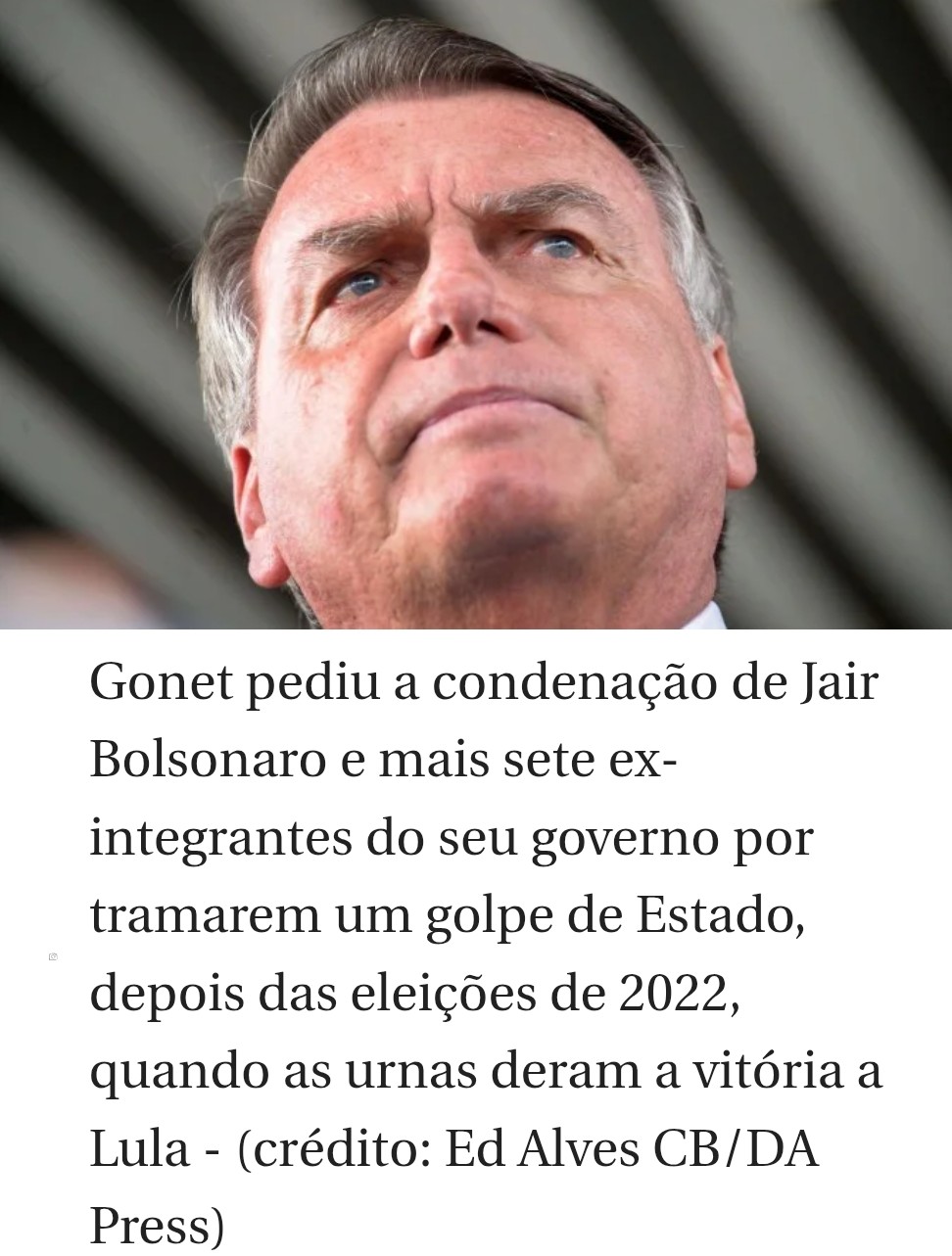 Gonet pediu a condenação de Jair Bolsonaro e mais sete ex-integrantes do seu governo por tramarem um golpe de Estado, depois das eleições de 2022, quando as urnas deram a vitória a Luiz Inácio Lula da Silva.