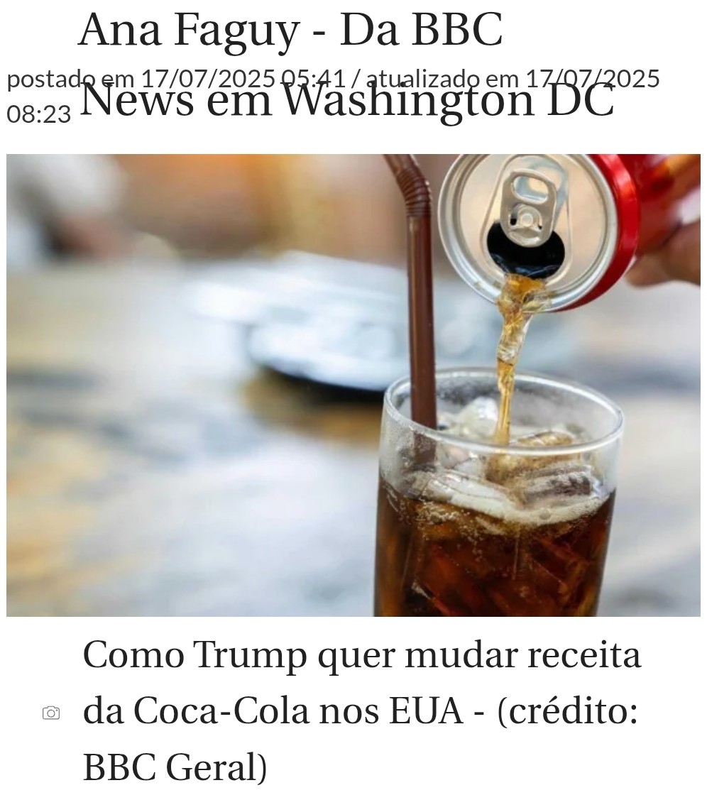 "Tenho conversado com a Coca-Cola sobre o uso de açúcar de cana de verdade na Coca nos Estados Unidos, e eles concordaram em fazer isso", escreveu Trump nas redes sociais.