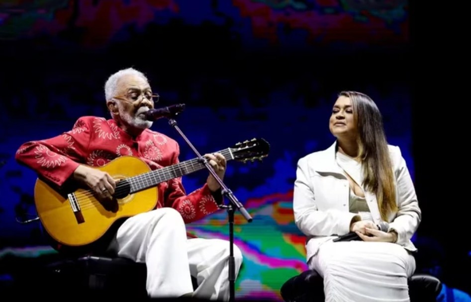 No palco, pai e filha dividiram os vocais da canção Drão, composta por Gilberto em homenagem à mãe de Preta, Sandra Gadelha.