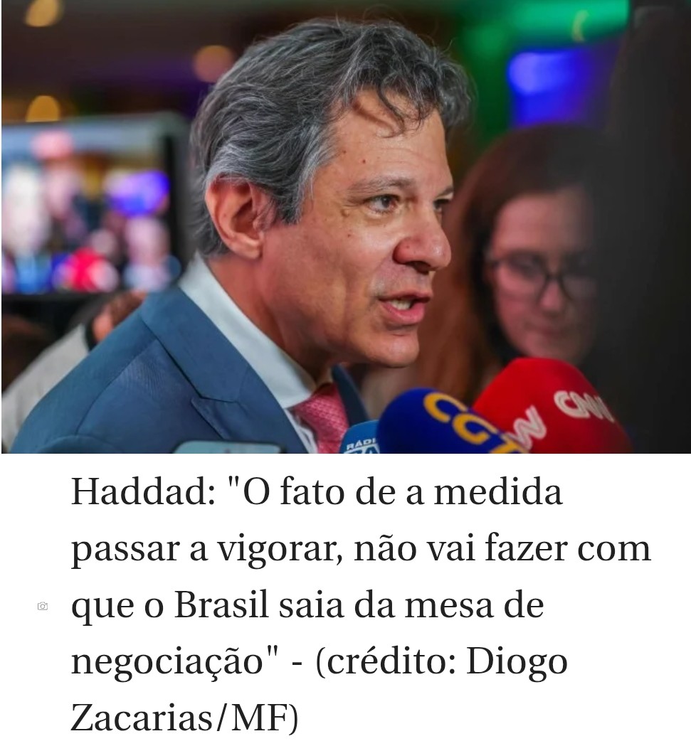 O ministro da Fazenda, Fernando Haddad, informou, nesta sexta-feira (1º/8), que deve se reunir na próxima semana com o secretário do Tesouro dos Estados Unidos, Scott Bessent.