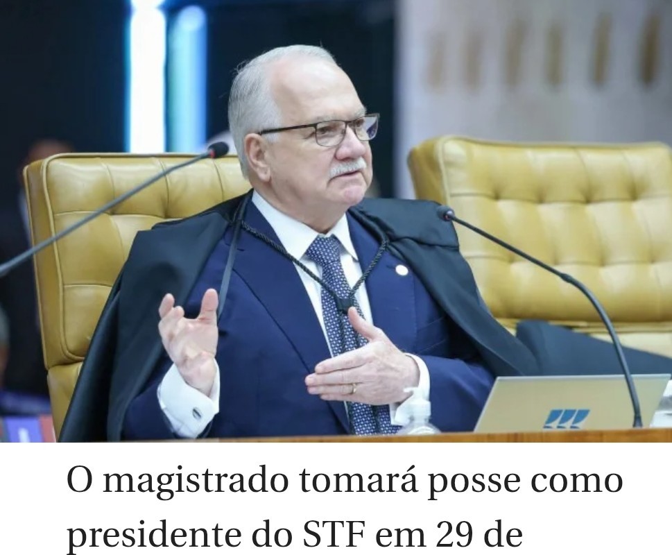 O magistrado tomará posse como presidente do STF em 29 de setembro.
