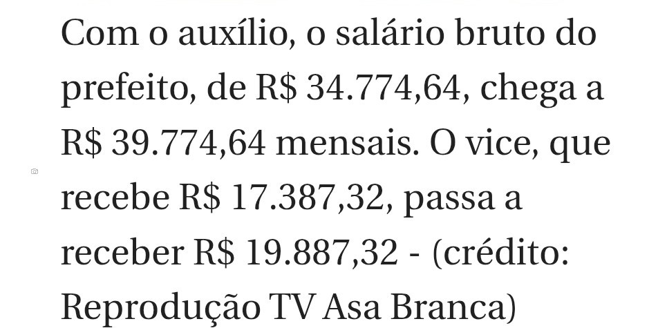Com o auxílio, o salário bruto do prefeito, de R$ 34.774,64, chega a R$ 39.774,64 mensais.