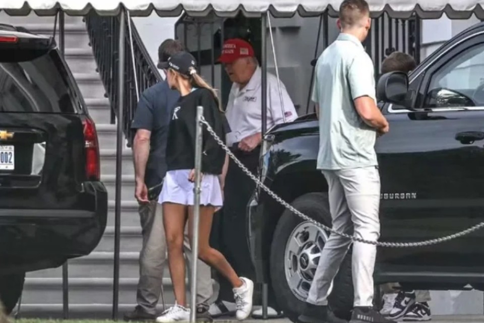 Uma foto tirada pelo repórter Andrew Caballero-Reynolds, da Agência France-Presse (AFP), confirma que, na manhã deste sábado, o presidente esteve com a neta, Kai Trump, no campo de golfe Trump National, localizado em Sterling, no estado da Virgínia.