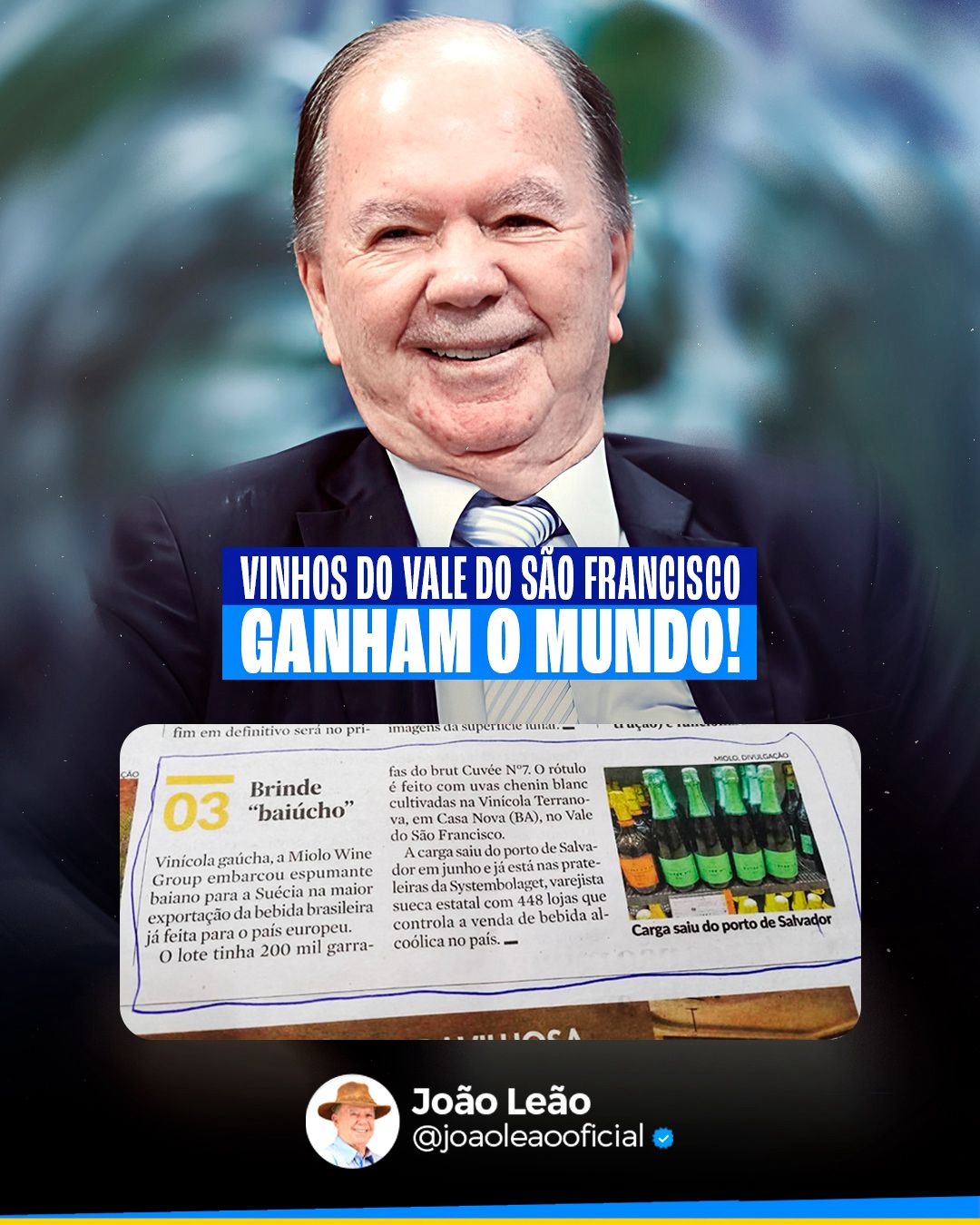 Foi sob a articulação de João Leão que a Vinícola Terranova, do Grupo Miolo, foi trazida para Casa Nova, no Vale do São Francisco.