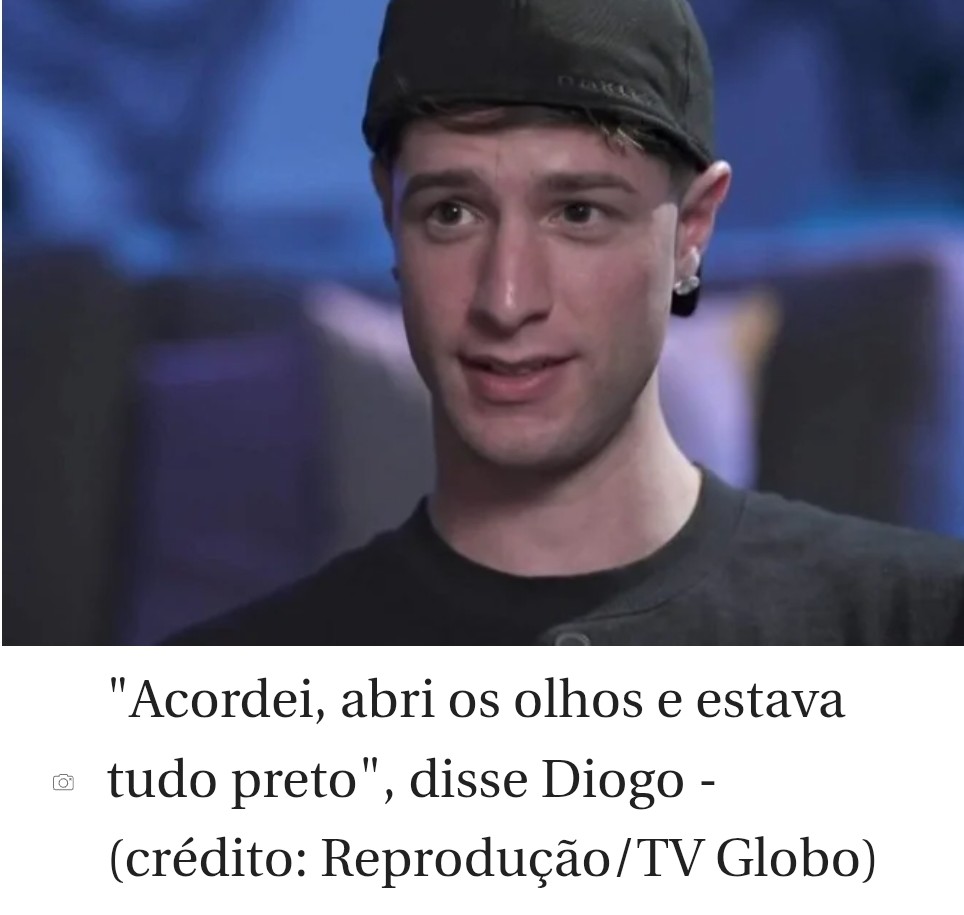 “Acordei, abri os olhos e estava tudo preto, com uma dor de cabeça muito forte”, disse Diogo, entrevista ao programa Fantástico, da TV Globo, no domingo (28/9).