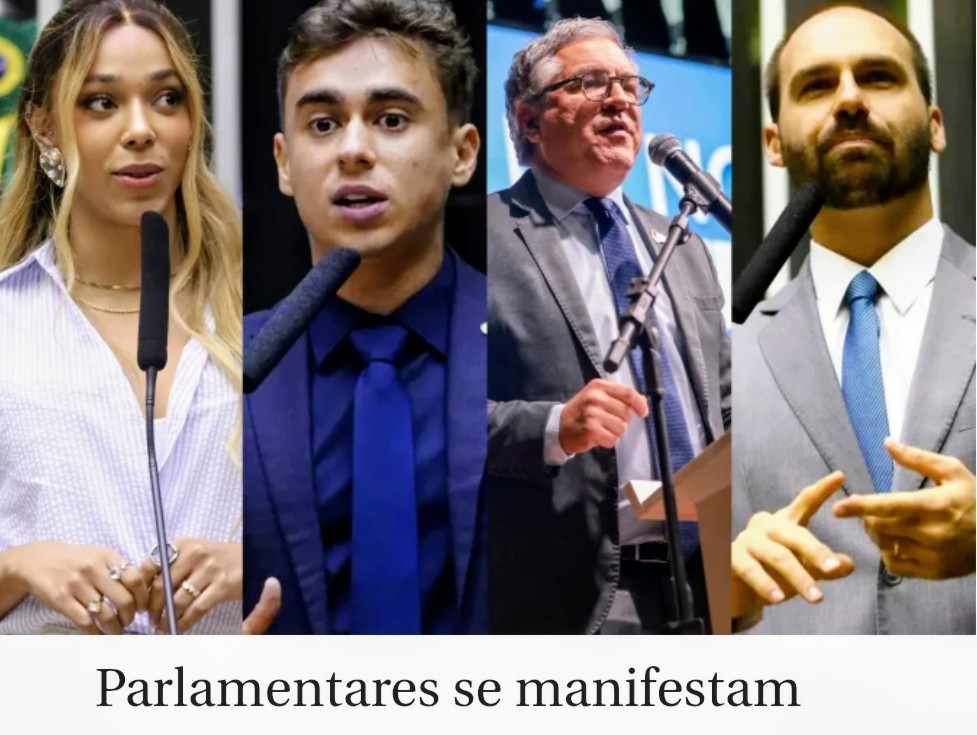 A repercussão do episódio foi imediata entre parlamentares brasileiros, com manifestações que evidenciam a forte polarização política em torno do tema.