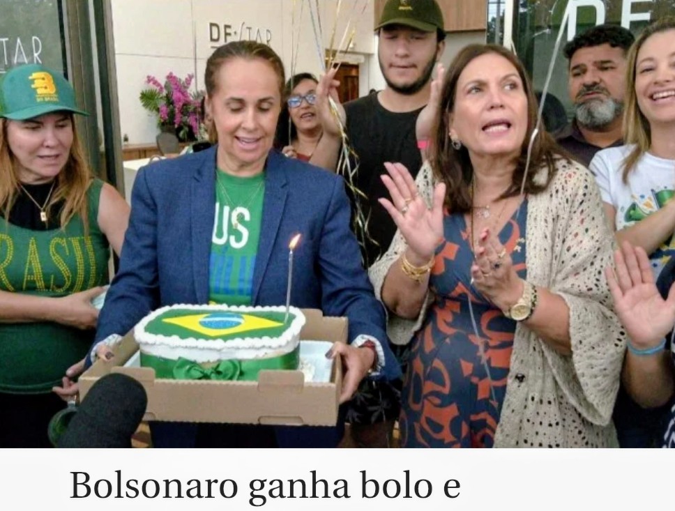 Apoiadores do ex-presidente Jair Bolsonaro levaram um bolo com a bandeira do Brasil ao hospital onde ele está internado e cantaram parabéns.