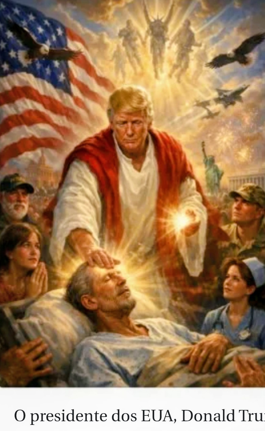Minutos depois, o presidente dos Estados Unidos publicou uma ilustração na qual ele próprio aparece como se fosse Jesus Cristo.