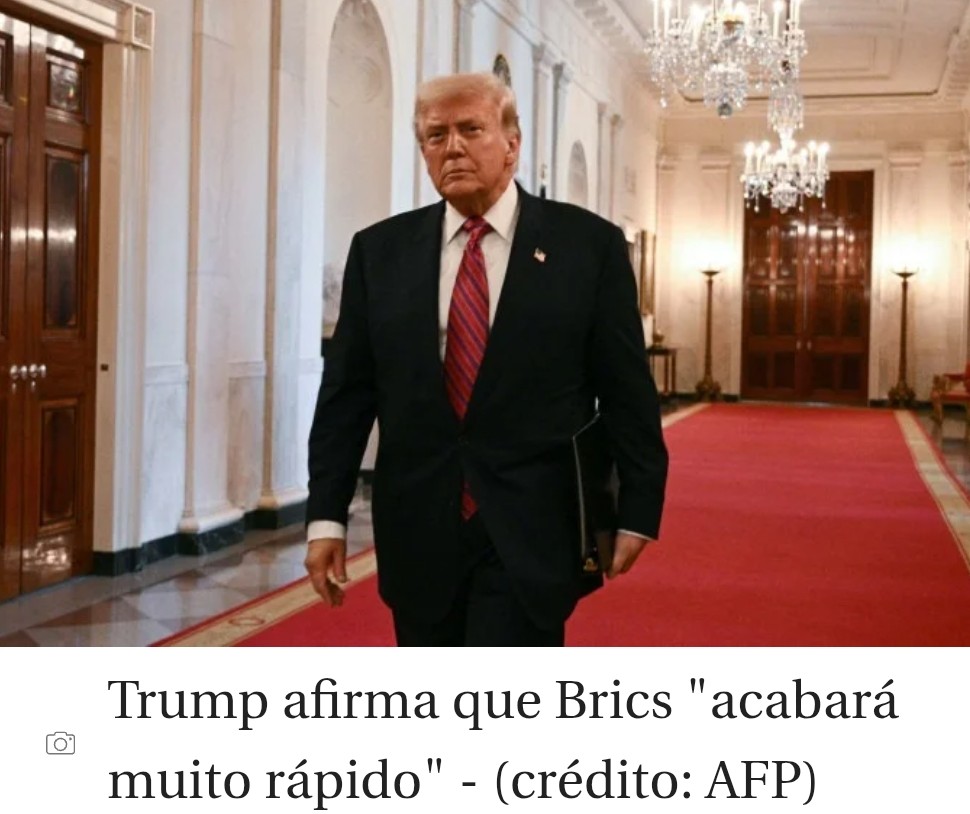 Trump diz que Brics "acabará muito rápido" se ameaçar o dólar