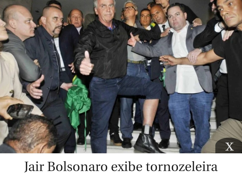 Só que desafiou a determinação de Moraes ao se deixar fotografar com a tornozeleira eletrônica na perna esquerda, ao lado de apoiadores.