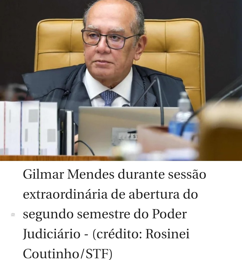 O ministro Gilmar Mendes, do Supremo Tribunal Federal (STF), criticou o deputado federal licenciado Eduardo Bolsonaro (PL-RJ) durante discurso na abertura do segundo semestre dos trabalhos na Corte.