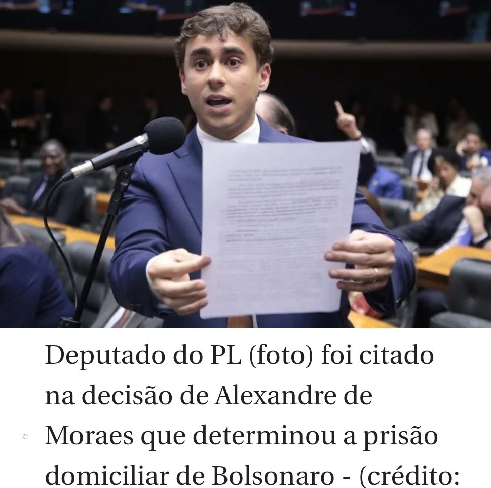 O deputado federal Nikolas Ferreira (PL-MG) classificou como “várzea” a decisão do ministro Alexandre de Moraes, do Supremo Tribunal Federal (STF), que ordenou a prisão do ex-presidente Jair Bolsonaro (PL).