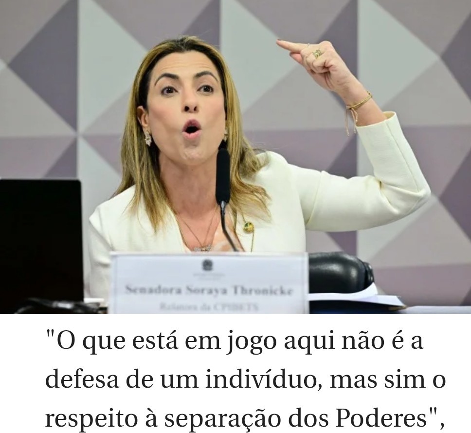 O Senado não pode se omitir diante de uma decisão que interfere de forma tão grave nas prerrogativas parlamentares”, declarou Soraya.