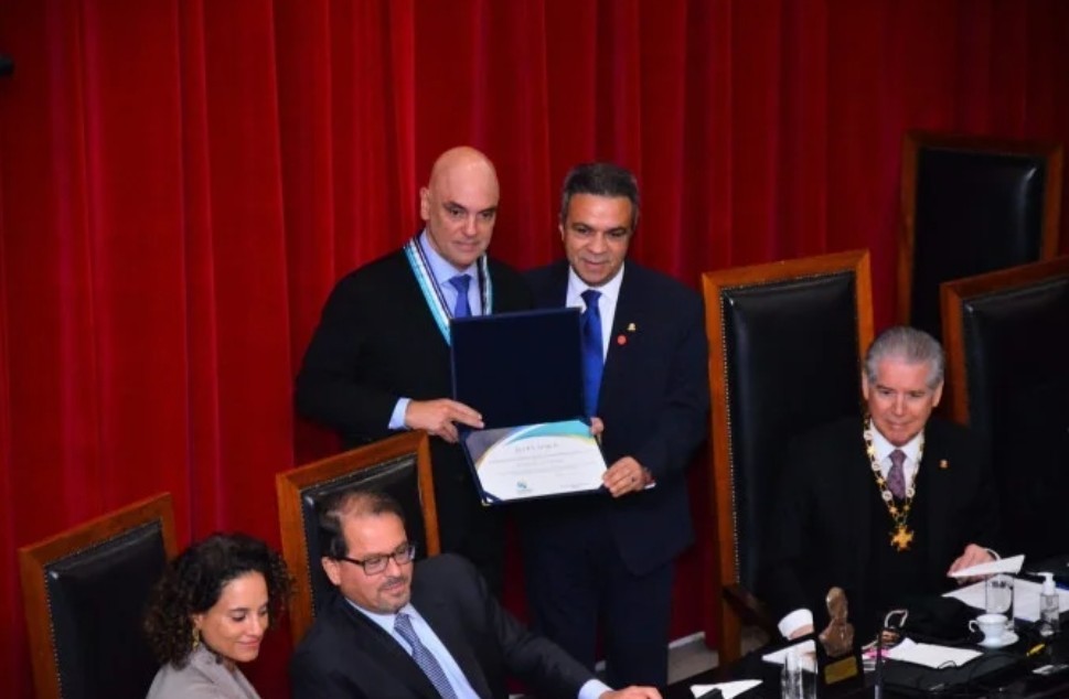 Após o discurso, Moraes recebeu homenagens e foi contemplado com o colar do mérito da Justiça de Contas.