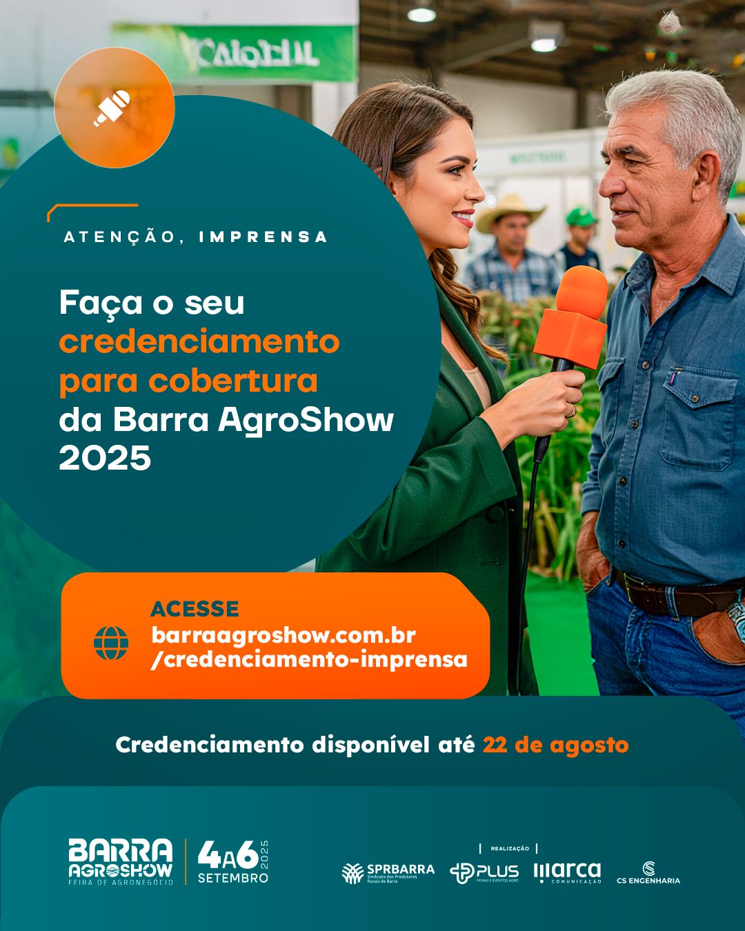 O credenciamento de imprensa para cobertura da Barra AgroShow 2025 está aberto.